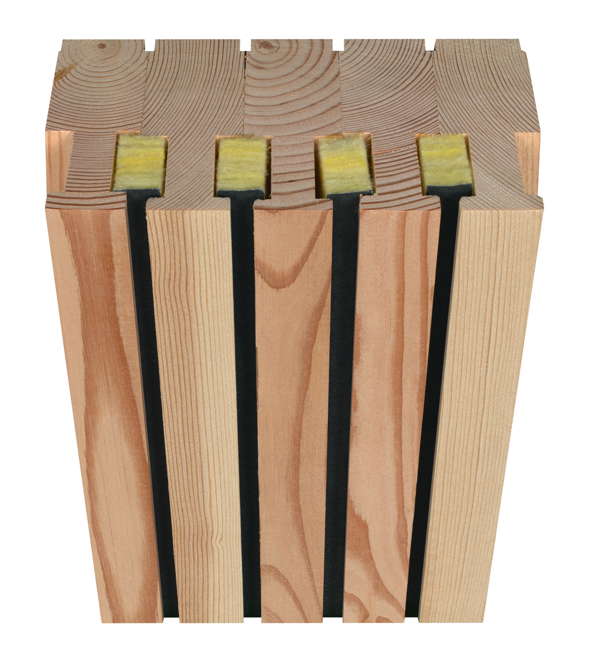 La taille réduite des billettes et leur résistance limitée en tant que diaphragme peuvent être surmontées dans les éléments fabriqués en atelier qui créent des panneaux de plancher ou de toiture plus grands en combinant des billettes sous une couche de revêtement qui offre une capacité de cisaillement structurelle et une protection contre les intempéries pendant l'installation. Un avantage architectural est que la face exposée du plafond peut être fraisée avant le laminage, afin de créer des profils acoustiques ou esthétiques.
